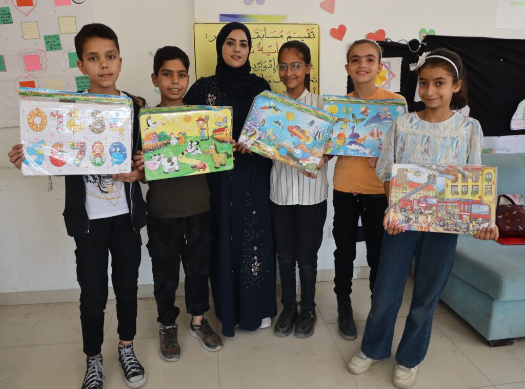 Engineer Rawand Deloul, the project coordinator, says, “We started six months ago and were able to reach 354 students from third to sixth grade,most of them fromthe Shati and Al-Nasr neighborhoods in northern Gaza. Although the numbers changed daily due to the conditions of displacement, we did not stop.”